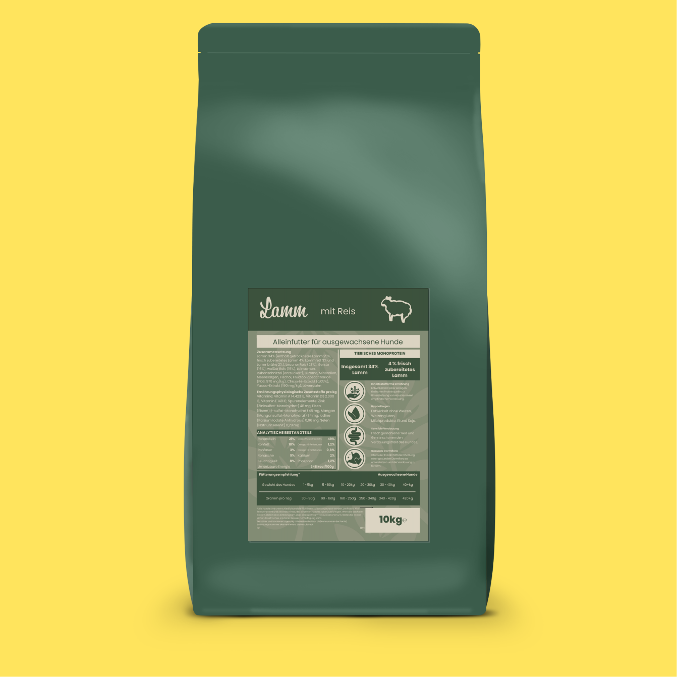 Lamm mit Reis wurde speziell für ausgewachsene Hunde entwickelt, um eine nahrhafte und bekömmliche Ernährung zu bieten.