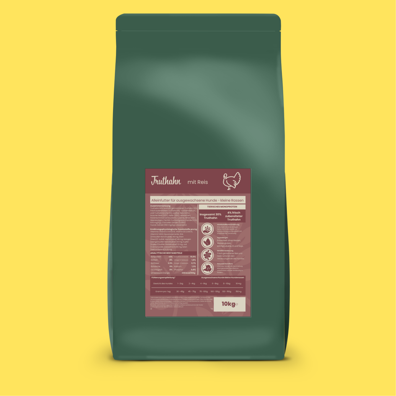 Dieses Rezept setzt auf tierisches Monoprotein vom Truthahn, einer mageren Eiweißquelle, die reich an essenziellen Aminosäuren ist. Durch eine schonende Garung wird das Protein geschützt, um eine hohe Verdaulichkeit und einen vollen Geschmack zu garantieren.